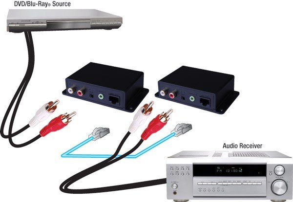 Allows analog audio signals to be transmitted using a single Cat5e or Cat6 cable.