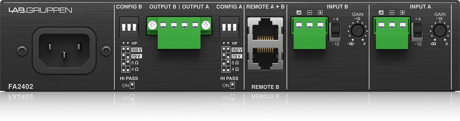 2 x 240 Watt dual-channel Amplifier provides the perfect solution for commercial and industrial applications requiring great sounding distributed audio coupled with power conservation and reduced operating expense.