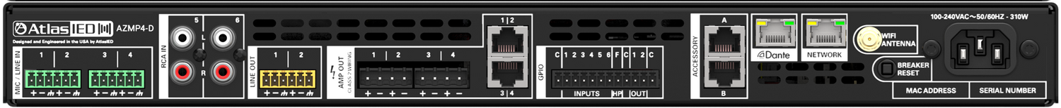 AZMP4-D Atmosphere™ 4-Zone Signal Processor with 600-Watt Amplifier and Dante