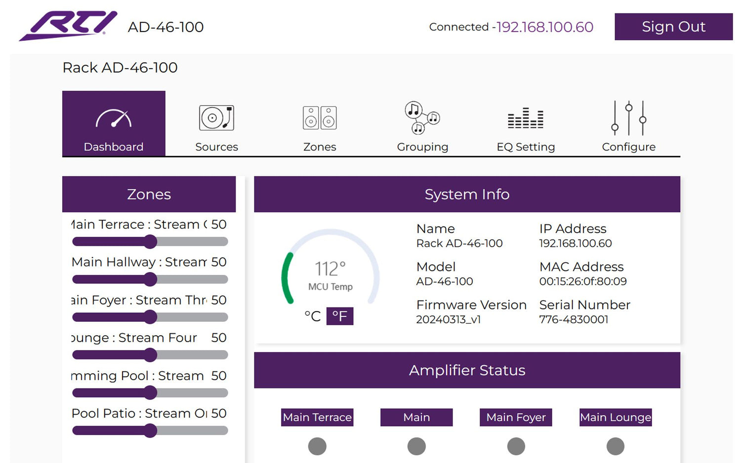 • Class D amplifier provides a robust and clear audio experience with 100 Watts @ 4Ω per channel per zone.