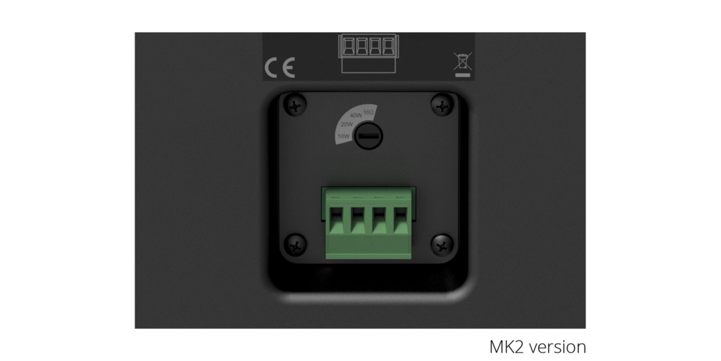 This new series retains all its strengths but has also been upgraded in a few specific areas with installer convenience and durability in mind. The connection of the indoor loudspeakers is changed to a terminal block, which makes it easier to install and connect the WX MK2 series wall speaker, while daisy-chaining is made more convenient through additional connection terminals (4-pin).. Both indoor and outdoor versions are now equipped with an elegant rotatable AUDAC logo.