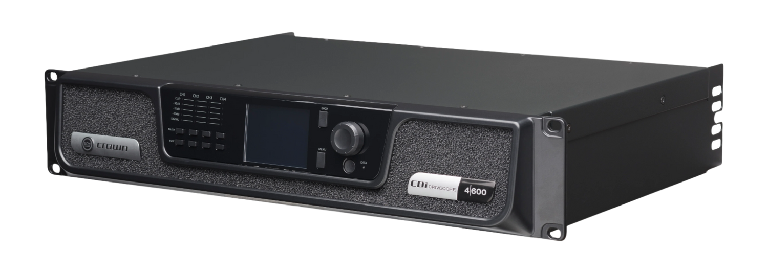 The CDi DriveCore Series is an evolution in amplification, providing an impressive mix of high-performance, rich feature set, and competitive cost. Using technology derived from our flagship Installed Sound amplifier (Crown DriveCore Install series), the CDi DriveCore 4|600 offers streamlined functionality to work in almost any medium sized installation such as cinema, houses of worship, bars, lounges, and more. Designed for ease-of-use in a variety of applications, the 4|600 is a 4-channel amp that includes network control/monitoring, high-level DSP, front-panel interface, and support for driving up to 100Vrms speaker loads without requiring a transformer. The entire CDi DriveCore line comes pre-loaded with JBL speaker tunings to help make installations quicker and easier.