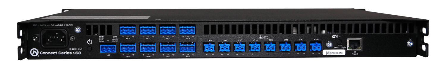 Introducing the world’s first Internet of Things- (IoT) enabled, professional-grade amplifier family – the NETWORK CONNECTSERIES. Perfectly suited for small to medium scale installations, these two, four, and eight channel amps feature direct HiZ (70V or 100V) or LoZ selectable by channel. With three ways to connect, you can engage the built in Wi-Fi access point, connect to the venue’s Wi-Fi, or use the FAST Ethernet to connect to any local area network via Cat5 or Cat6 cable.