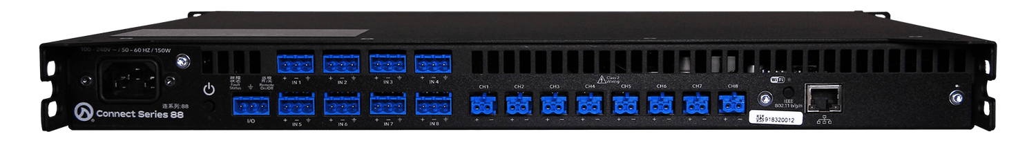 Introducing the world’s first Internet of Things- (IoT) enabled, professional-grade amplifier family – the NETWORK CONNECTSERIES. Perfectly suited for small to medium scale installations, these two, four, and eight channel amps feature direct HiZ (70V or 100V) or LoZ selectable by channel. With three ways to connect, you can engage the built in Wi-Fi access point, connect to the venue’s Wi-Fi, or use the FAST Ethernet to connect to any local area network via Cat5 or Cat6 cable.