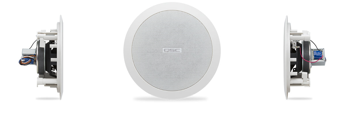 The QSC AcousticCoverage™ Series “no back can” models (nb) are full-range ceiling-mounted loudspeakers. Each comes with a 70/100V transformer and is suitable for a wide variety of audio/ video conferencing reinforcement, voice paging and background music applications.