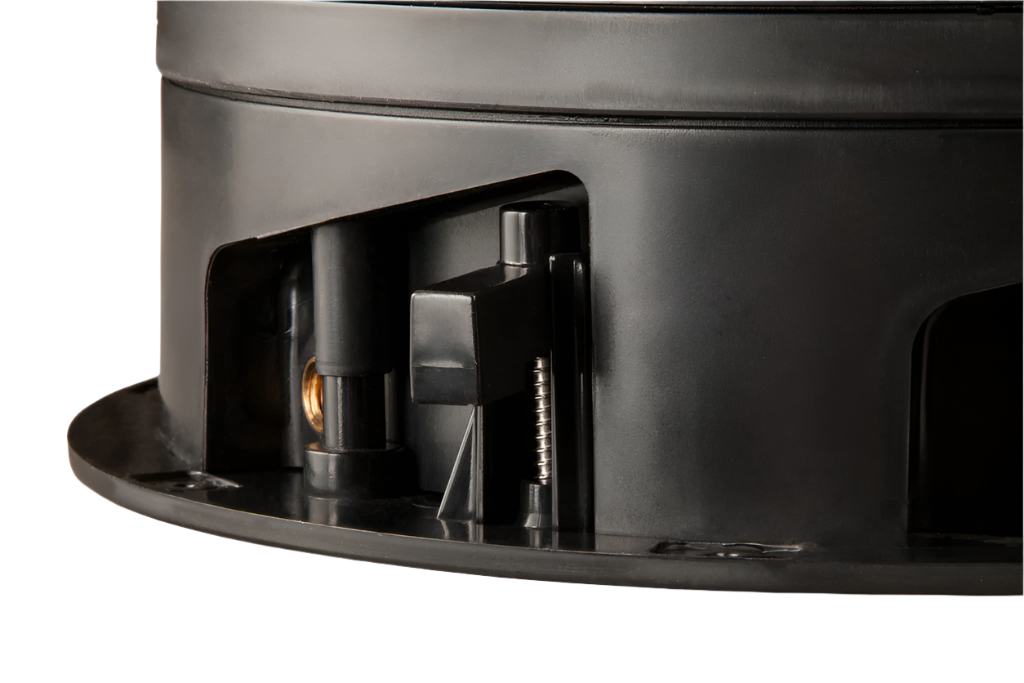 This patented technology is a ‘twist’ on Ported Transmission Line design, that optimizes air movement to produce astonishing sound. The enclosure also keeps sound from bleeding to other rooms while adding 6 to 9dB boost in mid-lower bass.
