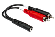 This cable is designed to split a stereo signal. Black- and red-coded phono plugs indicate left and right respectively.
