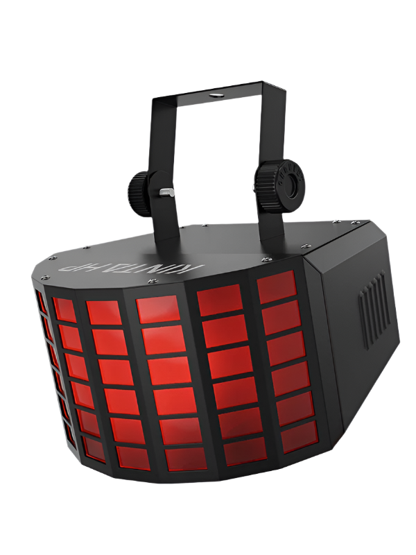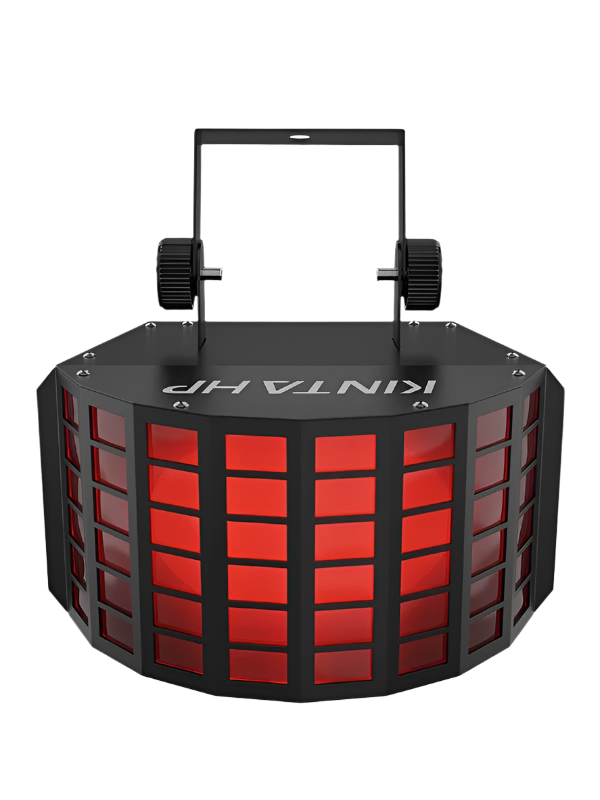 Dazzling displays of thousands of multi-colored beams burst from this compact high-powered LED effect light. Kinta HP features an innovative grouping of 2 quad-color LEDs (RGBW & CMYO) to produce unique color combinations and continuous motor rotation produces dynamic effects not capable on other fixtures. Kinta HP has adjustable motor speed and rotation to ensure the light matches the environment and its digital display allows color and rotation speed control without the need of DMX. Trigger built-in automated and sound-activated programs in master/slave or DMX mode and use an optional IRC remote for more flexible control options.