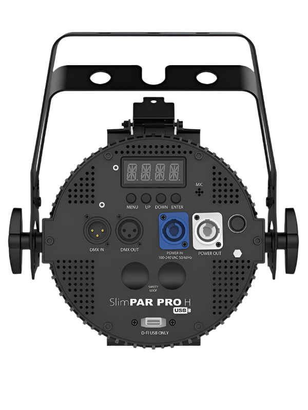 SlimPAR Pro H USB is a hex-color (RGBAW+UV) designed for any application that calls for a high-power, low-profile LED wash light with precise colors. Features include D-Fi USB compatibility for wireless control. SlimPAR Pro H USB has no moving parts and is flicker-free, so it is ideal for quiet and on-camera applications. Generate a broad spectrum of colors and achieve natural-looking color temperatures with 6-in-1 LED technology.