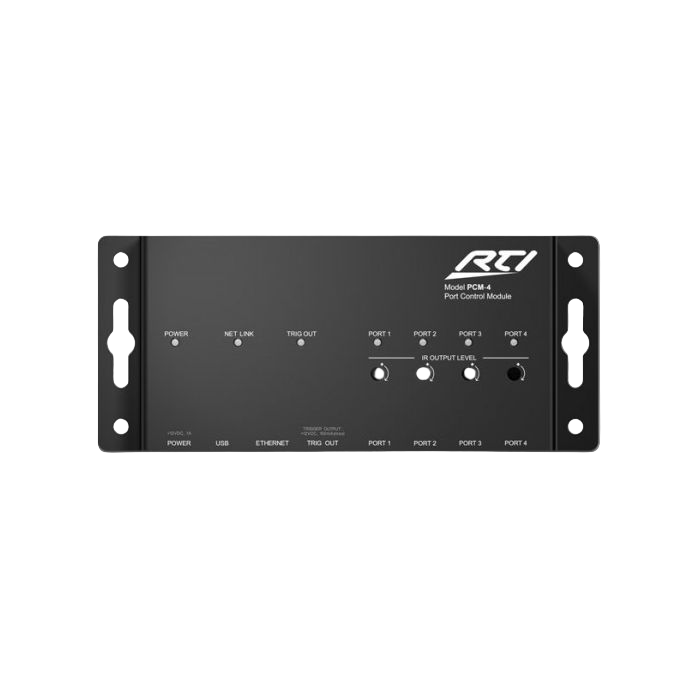 The PCM-4 expands the output capabilities of an XP series control processor to accommodate larger projects. Four multi-purpose I/O ports and a voltage trigger output (12VDC) provide convenient control anywhere a local area network (LAN) connection exists. Each MPIO port provides IR routing capabilities, one-way RS-232 communication (using CM232) and power sensing (using VPS1/SPS1).