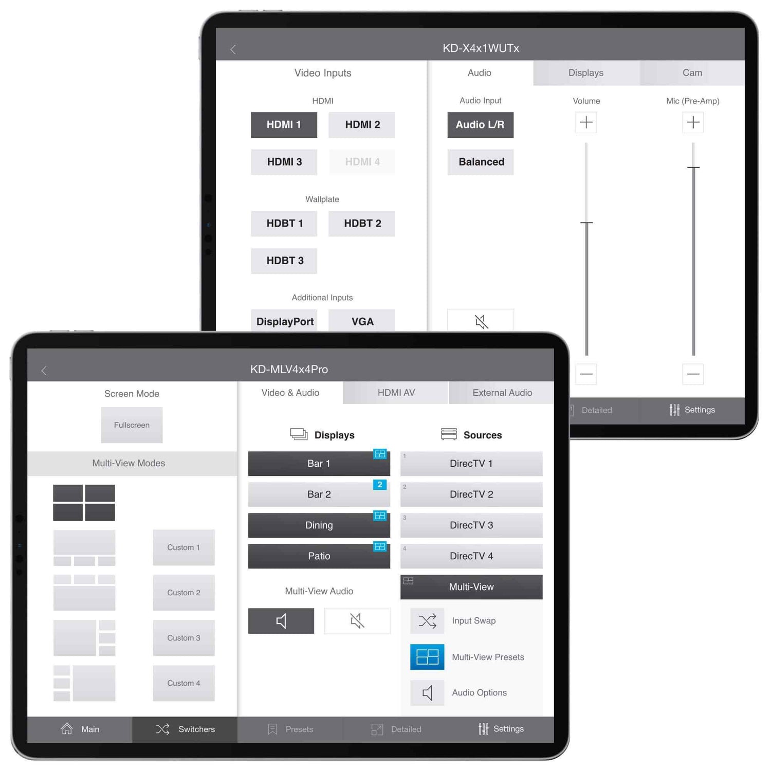iOS app provides a programming-free user interface for controlling Key Digital app-ready devices and systems via network. KD-App scans the network to find the controllable system, and displays a pre-built UI including customized system, source and display naming, video wall control, source and displays IR control panels, and PTZ camera control depending on your Key Digital system.