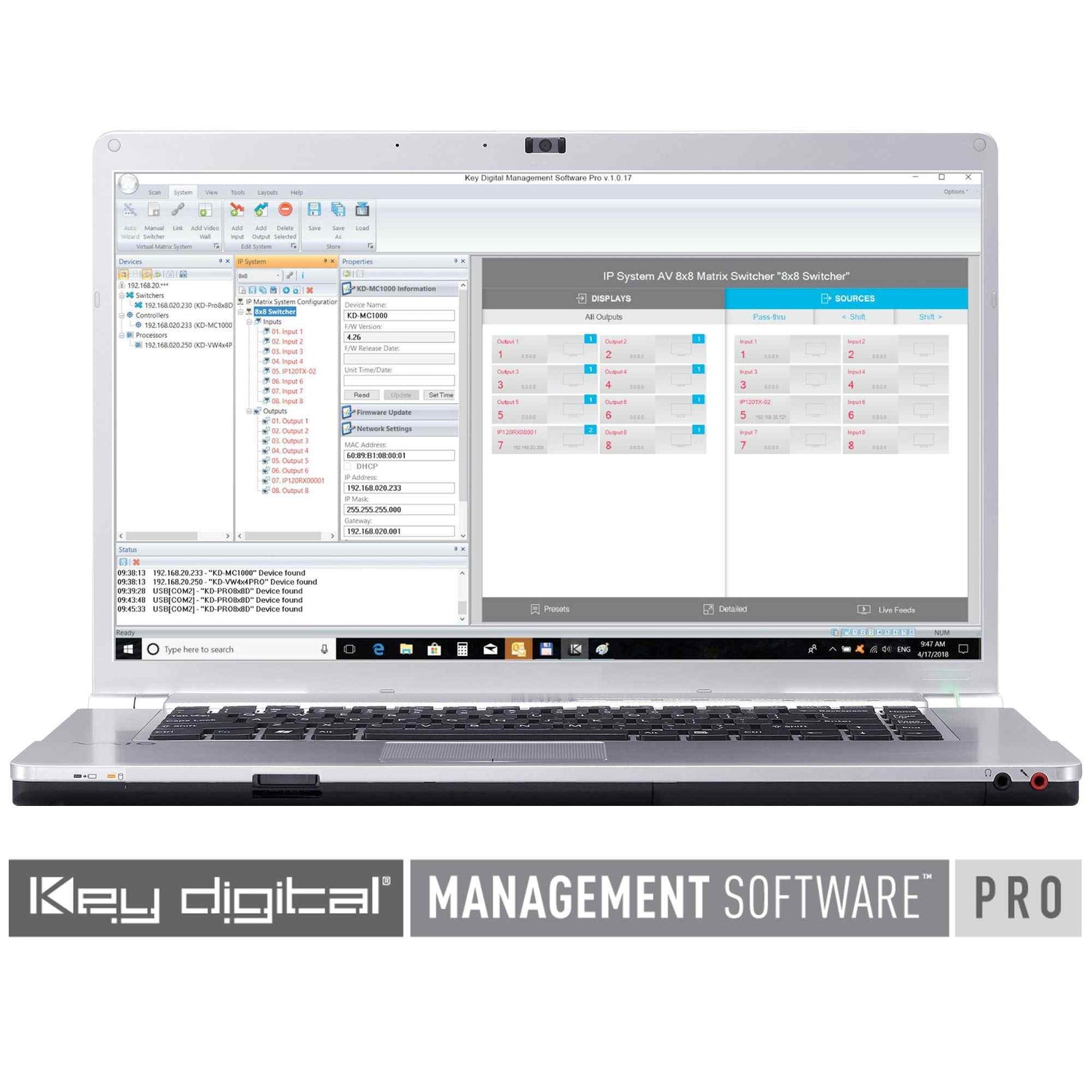 Key Digital Management Software (KDMS) Pro is a Windows PC software used to configure Key Digital deceives and systems via IP or USB. No installation is required on the PC, simply download and extract the zip file, open the application and scan the network or USB connectivity for the device to update the IP address, system name, video source and display names, and more.