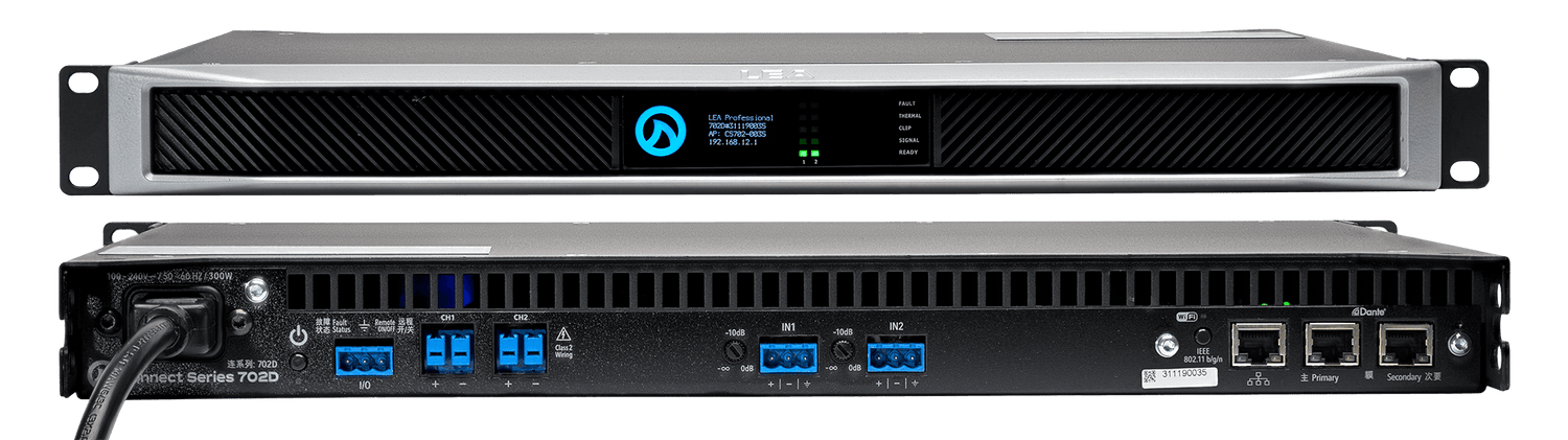 The CONNECTSERIES 702D is a 2-channel amplifier with 700 watts per channel. As part of the Dante CONNECTSERIES, the world’s first Internet of Things- (IoT) enabled professional-grade amplifiers, perfectly suited for small to medium-scale installations.