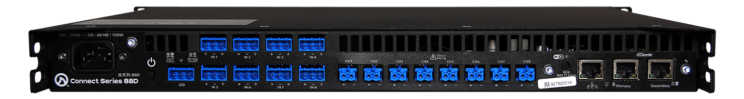 CONNECT 88D 8 Channel X 80W @ 4ω, 8ω, 70v And 100v Per Channel. Internal Dsp W/ Crossovers And Dante
