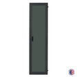 The door is reversible and mounts with left or right-hand swing using nutserts provided with the specified rack. Features integral handle and key lock (keyed differently than rack's recessed rear door).