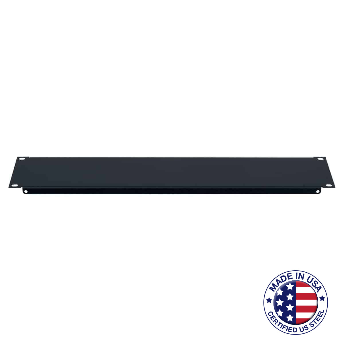 Blank 18-gauge steel panels with smooth black finish have a flange for added strength. Panels are available from 1/3 rack unit up to 6 rack units. Product is securely wrapped — ideal for shipping and merchandising.