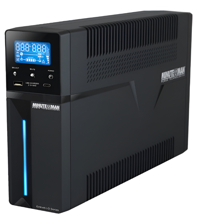The Entrust-LG UPS Series is a compact line-interactive mini tower UPS, perfect for small to medium-load applications. Its versatile form factor integrates seamlessly into any environment, providing reliable protection against power fluctuations and outages.