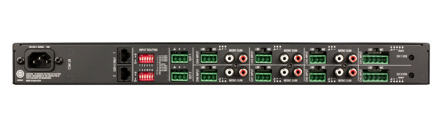 CSM28 Commercial Mixer 8 Input 2 Output Fanless 1U Full-Rack Mounting Kit Included