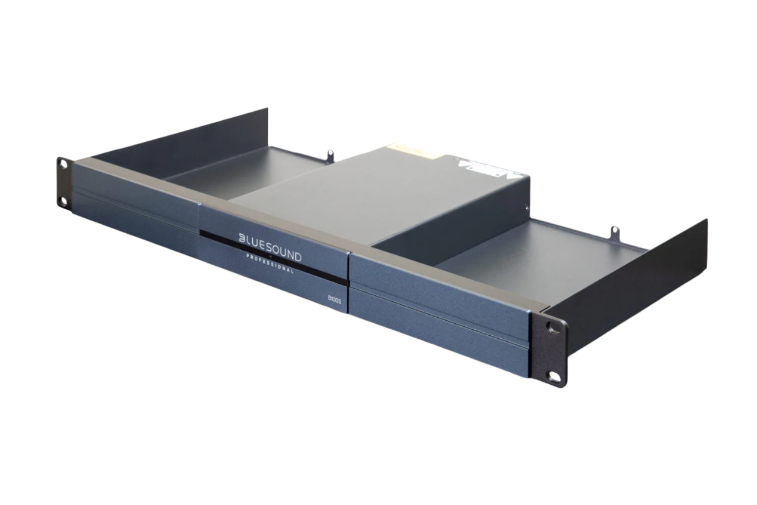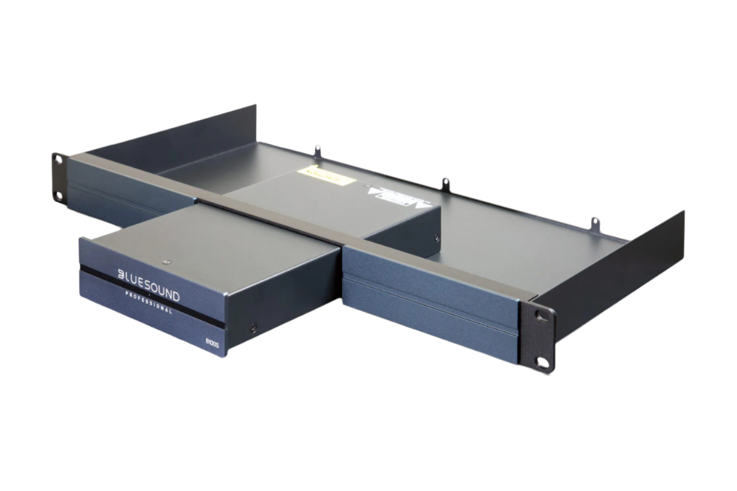 The Bluesound Professional RM100 is a rackmount system allowing up to 3 x B100S network streaming players to be mounted in a 1U space in a 19” rack. The B100S modules slot in from the front and are secured by a rear panel screw, allowing for swift replacement when required. B100S units are supported with a full chassis.