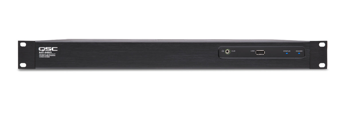 The QSC MP-M music and paging mixers are fixed architecture mixer/processors offering unprecedented capabilities combined with ease of configuration and operation. The products are intended for retail and hospitality applications in which high-quality audio from various sources is routed to multiple zones. Live mixing functions are also supported for applications requiring reinforcement of entertainment, presentations or conferences.