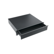 The UD Series rack drawer offer an economical rack storage solution. Full extension ball bearing slides extend a full 14” to reveal inside dimensions measuring 15-7/8” wide by 14-1/2” deep. Each model comes with a face formed drawer pull. User-installed latch and keylock are available options. Black powder coat finish.