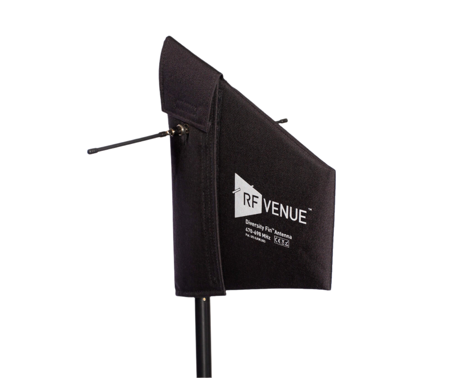 The Diversity Fin® Antenna is a multi-purpose antenna for wireless microphones that doesn’t drop out by using our patented cross-polarized design. It provides a diversity solution in a single package by combining one log-periodic dipole array (LPDA) and one dipole antenna in an orthogonal (right angle) configuration. One element captures vertically polarized signals, and the other horizontally polarized signals.