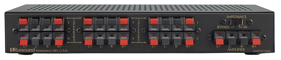 The SS-6.2 offers two operating configurations: Impedance Matching and Bypass. Impedance-matching mode provides automatic overload protection for use even with high-power amplifiers. This mode allows multiple pairs of speakers to be safely connected to an amplifier using the built-in automatic impedance-matching circuitry.