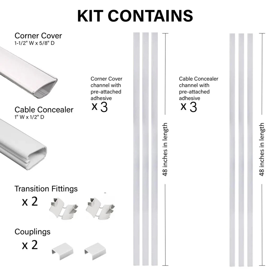 The mess and clutter of cords is no more with the Sanus Cable Concealment Kit III. It is perfect for hiding larger bundles of home entertainment cabling, speaker wires, TV/video cabling, and home office wiring.