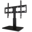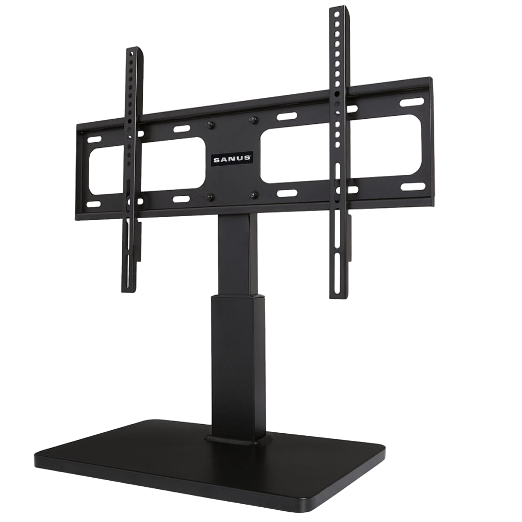 The Sanus Swivel TV Base is a table-top TV base that works on all surfaces and is a substantial improvement over the stands that are traditionally included with TVs. By providing 74 degrees of swivel left to right, the Swivel TV Base dramatically improves viewing range by allowing you to point the TV to where you are seated. The stable footprint is optimal for TV stability for furniture with shallow depth, and the adjustable height provides a sleek look for the perfect set up.