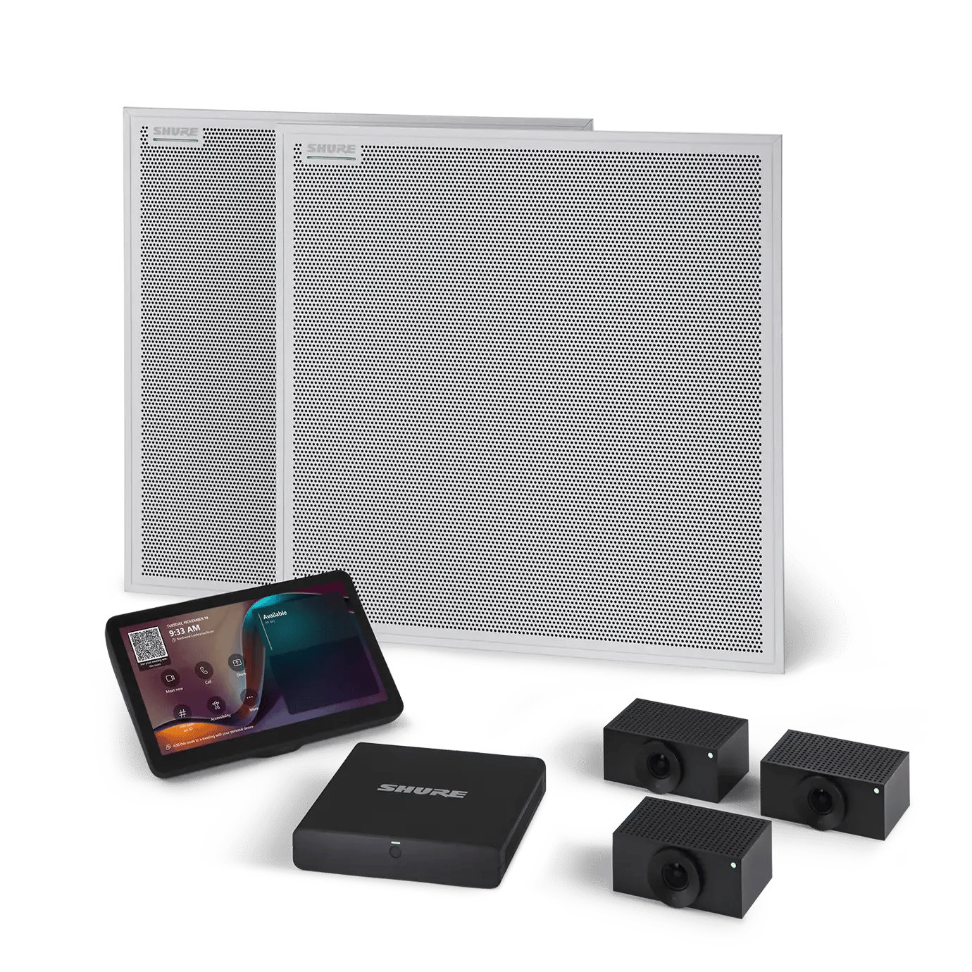 Boost collaboration with simple and secure Microsoft Teams Rooms conferencing kits. With zero-touch provisioning, you can effortlessly deliver high-quality audio and video experiences in your small, medium, and large meeting and collaboration spaces, up to 33 x 18 ft (10 x 5.5 m). The component-based systems provide everything you need - automatically. No programming or adjusting of audio and video settings is required. All kits include a powerful Windows-based Teams Rooms compute with Shure’s premium audio signal processing, an intuitive touch panel, a superior all-in-one ceiling array microphone + loudspeaker, and intelligent, high-resolution video.
