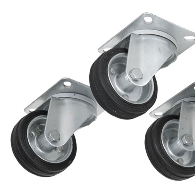 Ease your pain when transporting your subwoofers with the JBL Accessory Caster Kit, a set of four wheels with installation hardware that are designed for any compatible JBL products, such as the SRX918S and SRX928S subwoofers. The steel housing and polyurethane wheels are black for a discrete look. Each caster has a load rating of 220 lb.