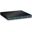 TRENDnet's 52-Port Gigabit Web Smart PoE+ Switch, model TPE-5048WS, delivers advanced management features with a 104Gbps switching capacity. This rack mountable IPv6 ready switch comes with an intuitive web-based interface. Advanced traffic management controls, troubleshooting, and SNMP monitoring make this a powerful solution for SMB networks. The TPE-5048WS provides 48 gigabit PoE+ ports with a total power budget of 740W, and four shared gigabit ports (RJ-45 or SFP). The PoE+ standard supplies up to 30W of power per port for devices such as high-power wireless access points, PTZ (Pan Tilt Zoom) Internet cameras, and VoIP telephony systems.