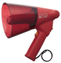 The ER-1206S is a compact splash-proof megaphone rated at 6 W output featuring a built-in siren. It features IPX5 water-jet-resistant designs. Pressing the siren switch sounds the siren, alerting the people to the emergency situation. It operates with 6 R6P batteries, or 4 R6P batteries when the battery spacer (accessory) is used. Handle and microphone with anti-bacteria treatment improve hygiene and safety during use.