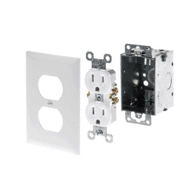 This outlet kit is the power source of devices mounted in the low voltage enclosure. It is designed to mount in the rectangular knockout location at the bottom of the enclosure.